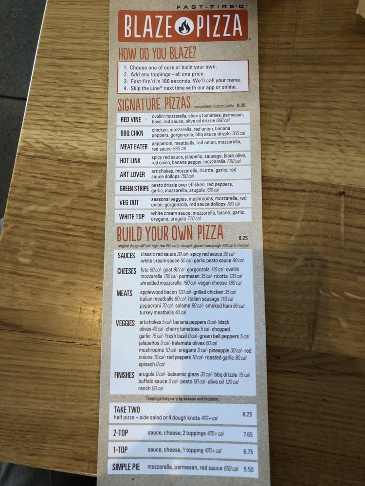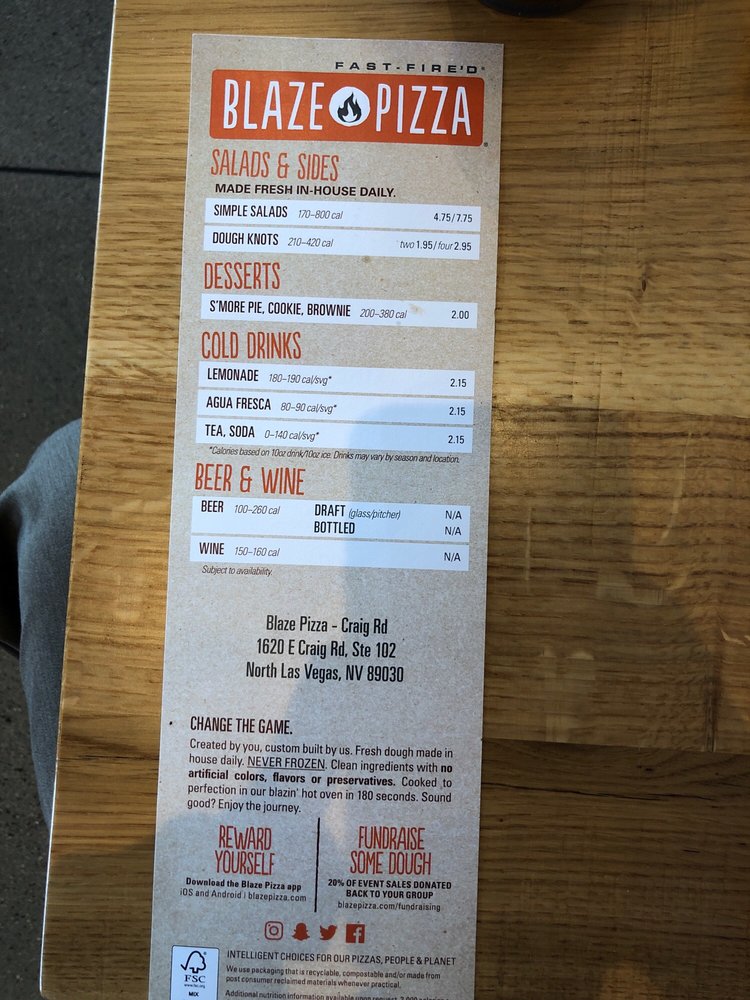 Blaze Pizza Las Vegas Menu (Update 2025)